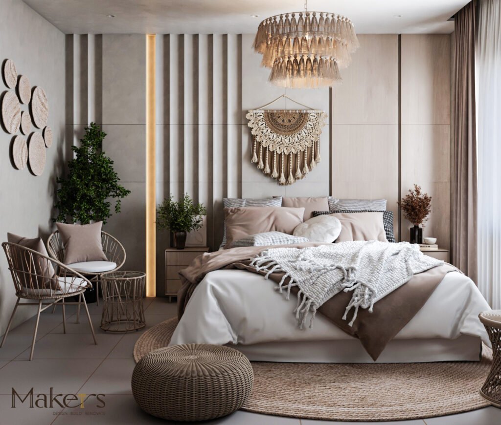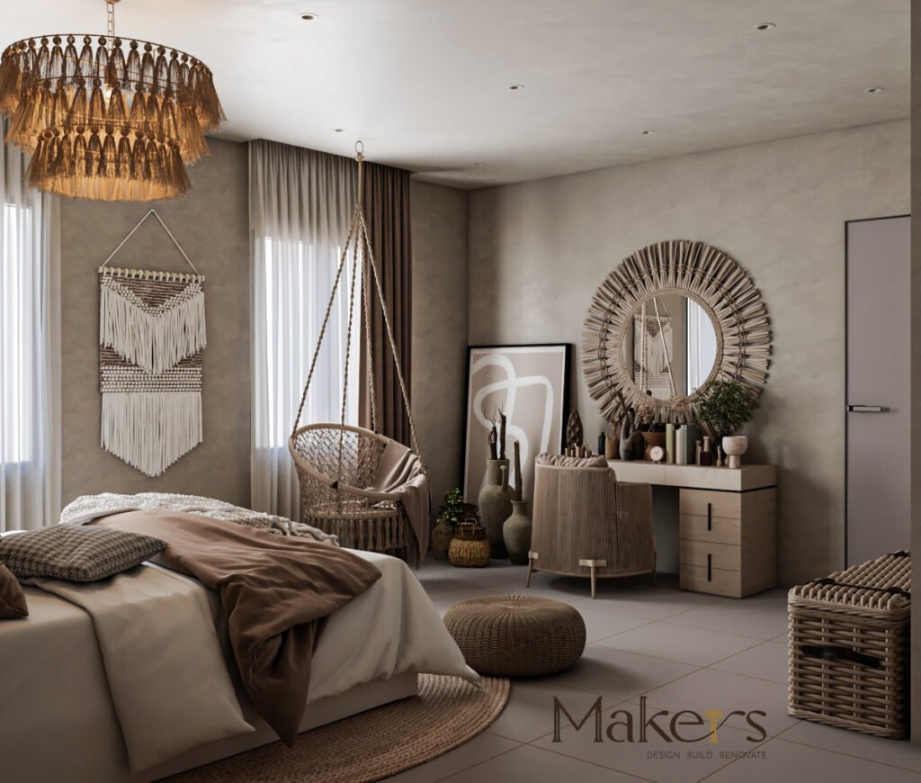 Project name: Modern Boho Bedroom – Riyadh & Roshan
